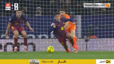 صحنه جالب بازی اسپانیول و بارسلونا؛ خوان گارسیا با هل دادن جرارد مارتین مانع گلزنی اسپانیول شد
