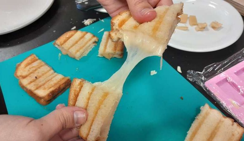محقق الخاندرو مارانگونی خواص کشسانی آنالوگ پنیر گیاهی تیمش را نشان می دهد. اعتبار: الخاندرو مارانگونی