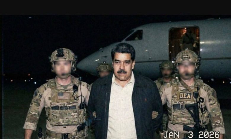 یکی از تصاویری که بیش از همه دست به دست شد، مادورو را کنار دو سرباز DEA نشان میداد. عکسی که طوری کادربندی شده بود که انگار از صفحه لپتاپ گرفته شده و تاریخ ۳ ژانویه ۲۰۲۶ نیز روی آن وجود داشت. این عکس هوشمندانه طراحی شده بود: